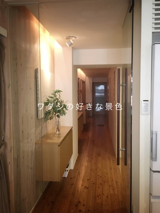 ちなみに、LDKからこの廊下の間仕切りの建具はオールガラスでスッケスケのシャレオツです〜