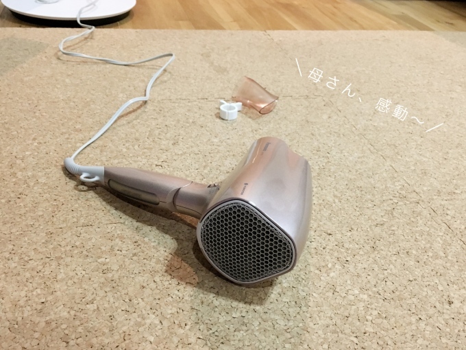 ここの先(ドライヤーに付いてる先端のヤツ。ワタシいつも外して使う)も取っといたで!