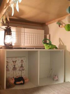 ムスメスペースを作るのに、取説を置いてあるワゴンとムスメスペースを何かで仕切りたいなぁと思いました。