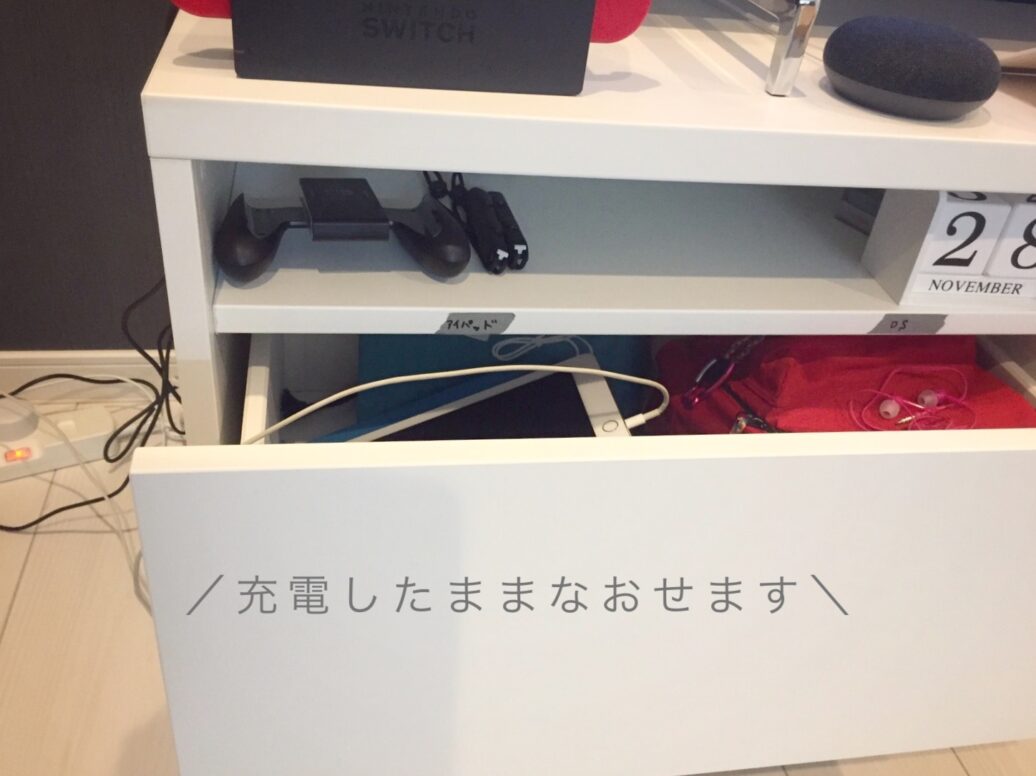 しかも引き出しはすこーし隙間があって、充電タップを通せそう!