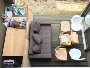 1階のLDKは全ての家具をウッドデッキに出して