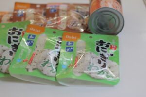 ということで不謹慎かもしれませんが賞味期限間近の保存食の中から、台風当日にアルファ米のおにぎりと、長期保存パンを食べました。