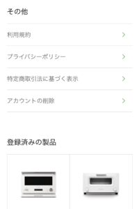 こういったお知らせは必ず届く上、便利なのが自分の持っているバルミューダー商品を登録しておけます。