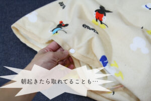 朝起きると、ボタンが取れていることもあったり、お腹までめくれあがっていることも。