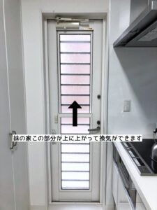 勝手口はガラスを入れた扉のことが多く、上げ下げの形で換気を取ることが可能です。