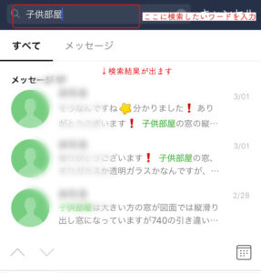 LINEですので、もちろんやりとりは文字として残ります。検索機能を使ってさかのぼれるので議事録としても有効です。