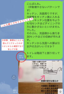 [chat face=”man1″ name=”ご主人” align=”left” border=”gray” bg=”none” style=””]間取り相談が無事終わった今だから言えますが、最初はLINEで相談って大丈夫?と思っていました。