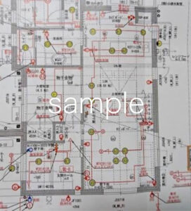 その上で、ハウスメーカーや工務店さん等(以下HM等)の電気図面に赤書きを入れていきます。