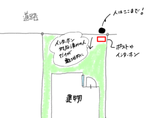 - ポストインしにきた人が通る