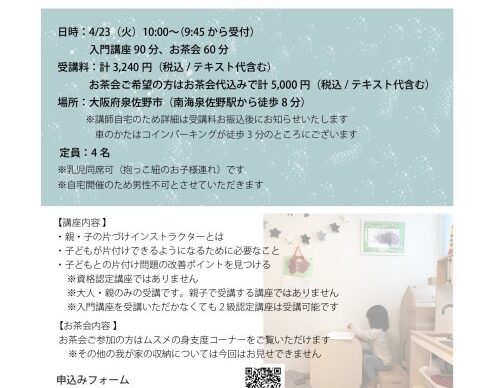◆親・子の片づけインストラクター入門講座inハギヤマさん家