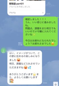 N様はLINEでのご相談はもちろん、対面でのご相談や我が家にお越しいただいてのご相談もお受けくださいました。